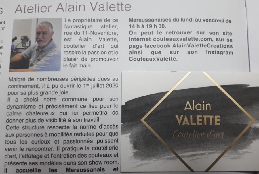 L’ouverture du magasin dans la presse locale Article mis en ligne le 4 octobre 2021 dernière modification le 29 novembre 2021 Quelques articles sur l’ouverture du Magasin dans la presse. Revue la passion des couteaux Journal de maraussan - fevrier 2021