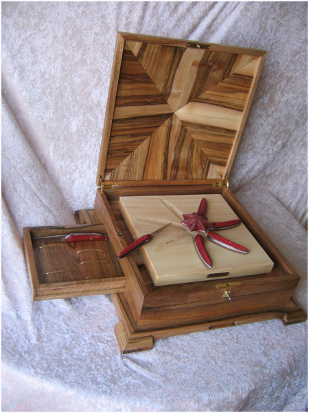 Afin de protéger cette création, Samuel REVET, ébéniste, a découpé et assemblé les éléments du coffret en noyer…
